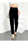 Kleshus Ganikus Siyah Kadın Mom Jean Yüksek Bel Likrasız %100 Pamuk Kot Pantolon Anna Model