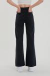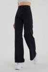 Ganikus Siyah Likralı Yüksek Bel Salaş Bol Paça Kot Pantolon