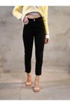 Ganikus Siyah Mom Kar Jeans Kadın Kot Pantolon
