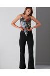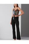 Kleshus Ganikus Vega Yüksek Bel Siyah İspanyol Paça Jean Flare Kadın Kot Pantolon Likra