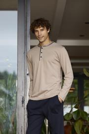 Kly 6025 Erkek Düğmeli Yaka Uzun Kol Pijama Takım