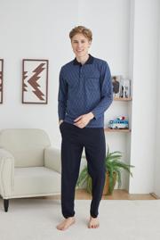 Kly 9247 Erkek Polo Yaka Düğmeli Uzun Kol Pijama Takım