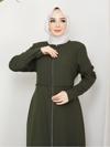 Dik yaka detayı ile modern ve şık bir görünüm kazandırırken, tesettür giyim koleksiyonunuzda fark yaratır