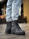 Nstil Günlük Erkek Bot Metal Toka Detaylı Bağcıklı Fermuarlı Oval Burun Kalın Kaymaz Taban Bootie 2118