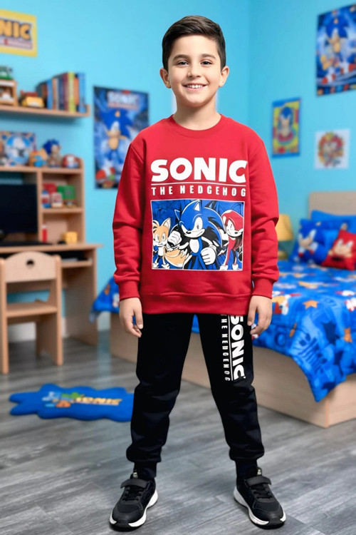 Enerjik ve eğlenceli tarzıyla dikkat çeken bu Sonic desenli kırmızı renk erkek çocuk mevsimlik eşofman takımı, minik kahramanların günlük yaşantısında konfor ve şıklığı bir araya getiriyor!