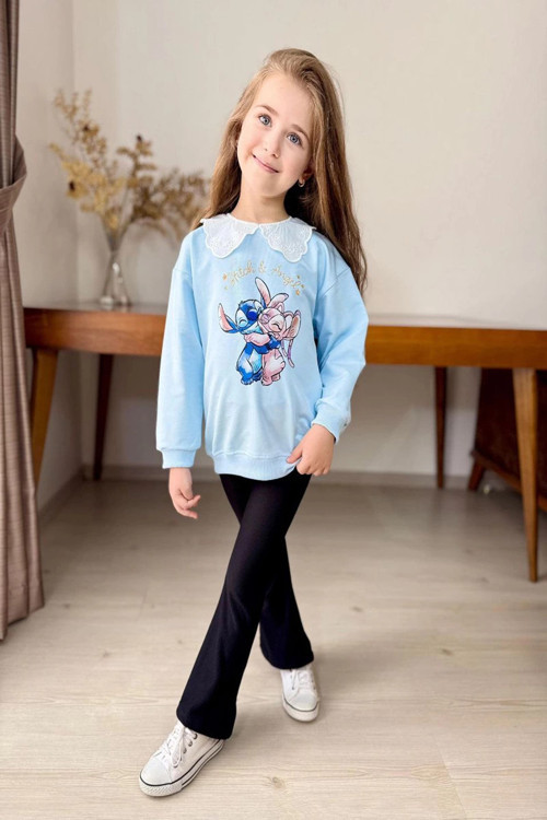 Sevimli Stitch Desenli Üst Sweatshirt Çocukların İlgisini ÇekerkenTakımın Bütünlüğü Şirin Bir Kombin Oluşturuyor. İster Günlük Kullanımda İster Özel Günlerde Rahatlıkla Tercih Edilebilir.Esnek Yapısı Sayesinde Hareket Özgürlüğü Sağlar.