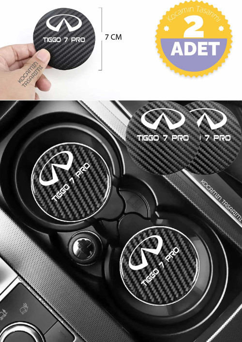 Kocamın Tasarımı Chery Tiggo 7 Pro Siyah Karbon Bardak Altlığı Chery Logolu Tiggo 7 Pro Yazılı Dayanıklı 7 cm Tasarımı 2 Adet