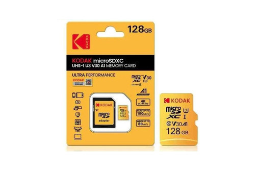 Kodak 128GB UHS-I U3/V30/A1 Yellow Micro SD + Adaptör