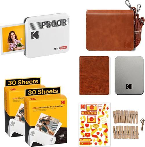 Kodak Mini 3 Retro - Taşınabilir Fotoğraf Yazıcısı( Kare 8x8cm Baskı - Beyaz ) BUNDLE