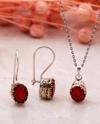 Kök Yakut Elişi Gümüş İkili Set 2327-Oval
