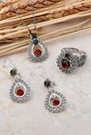 Kök Yakut Taşlı Telkari Elişi Damla Gümüş Set