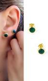 Kök zümrüt Taşlı 925ayar Gümüş Üzerine Altın Kaplama Tasarım Doğal Taş Minimal Küpe