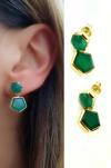 Kök zümrüt taşlı 925 ayar gümüş üzerine altın kaplama tasarım küpe