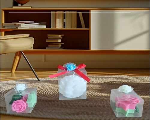 Kokulu Doğal beyaz pembe yeşil renk istiridye ve gül yıldız görünümlü 3 lü Dekoratif mum