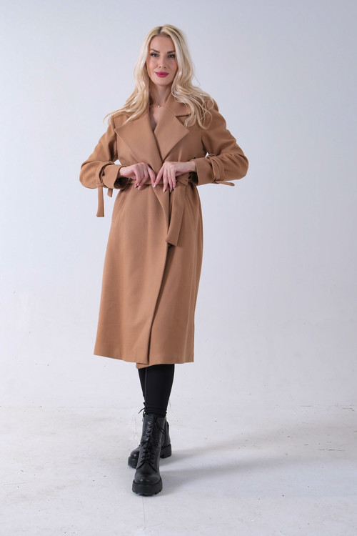 Kol Bağlamalı Seyyar Kuşaklı Uzun Kaşe Kaban