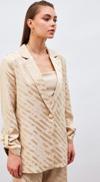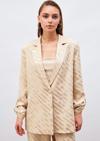 Kruvaze, astarlı, vatkalı, kendinden desenli, kol detaylı salaş ceket.