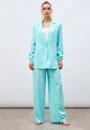 Sateen Kol Detaylı Desenli Salaş Ceket - Turkuaz