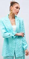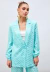 Kol Detaylı Desenli Salaş Ceket - Turkuaz