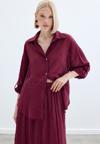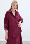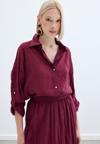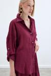 Ön düğmeli kapama, düşük omuz, katlanabilir kol, kalça altı boy, keten salaş gömlek.