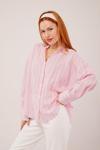 Kol Düğmeli Çizgili Pembe Gömlek