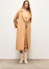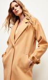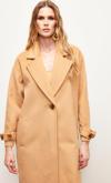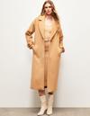 Ceket yaka, ön tek düğmeli, uun kemerli kol, iç astarlı, cepli, düşük omuz, uzun salaş kaban.