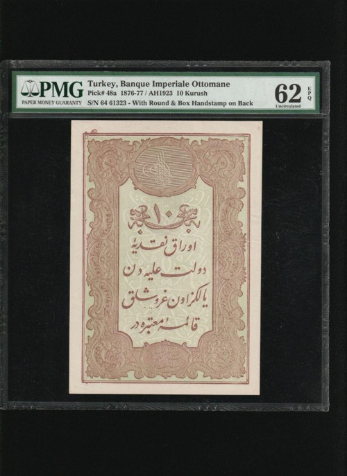 Koleksiyon NADİR**** PMG LABEL Errör'lü 62 Puan EPQ UNC/ÇİL 1876-77 /AH1923 Mehmed Kani Mühürlü II.Abdülhami