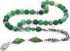 Gümüş Hediye Al Koleksiyonluk 925 Ayar Gümüş Püsküllü Küre Kesim Mat Yeşil-Beyaz Akik Doğaltaş Tesbih