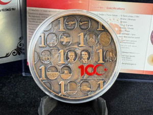 TÜRKİYE CUMHURİYETİ’NİN 100. YILI – BRONZ HATIRA SİKKESİ (DARPHANE ÖZEL BASIM) ve Özel Kadife Kutusu - Image 1