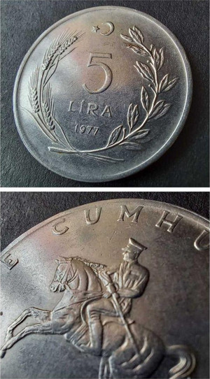 Escoines Koleksiyon 39963680e9a7db9391 1977 akmonital Mızrak Yele/Nadir Erörlü Hatalı ÇİL eski para