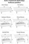 3 kademe açılır yükselip açılabilen, 3 kademede de büyüyüp küçülebilen, çizilmez yonga lam malzeme kullanılmıştır. kapalıyken sehpa, orta yükseklikte çalışma masası veya notebook kullanımına uygun yükseklikte olup koltukta oturma yüksekliği olduğu için oturduğunuz yerden yemeğinizi rahatça yiyebileceğiniz bir yükseklik sağlamaktadır. tam açılır yüksekliğinde normal standartlarda bir masa yüksekliğine yükselip sandalye veya ekstra tabureyle kullanıma uygundur. estetik tasarımı sayesinde diğer fonksiyonel sehpalardan farklı duruşuyla başarılı bir tasarımdır.