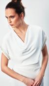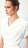 Sateen Kollar Taş Detaylı Salaş Bluz - Ekru