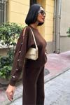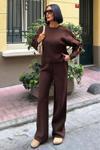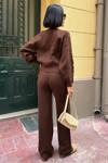 - Zarif kahverengi tonlarında, aksesuar detaylarıyla süslenmiş triko takım.; - Düz desenli ve rahat kesimli, günlük kullanım için ideal.; - Standart kalıp ile her vücut tipine uyum sağlar.; - Kadın ve kız kullanıcılar için tasarlanmıştır; şıklığı ve konforu bir arada sunar.; - Triko kumaşı sayesinde yumuşak dokunuşuyla gün boyu rahatlık sağlar.; - Uzun boy tasarımı ile hem sıcak tutar hem de zarif bir görünüm kazandırır.; - Pamuk ve akrilik karışımından oluşan materyali cildinize nazikçe dokunurken dayanıklılığı artırır.; - Fashion Forward stil anlayışını yansıtan modern ve trend bir tasarıma sahiptir.; - Casual koleksiyonun parçası olarak günlük kombinlerinizde kolayca yer bulabilir.; - İki parçadan oluşan set; kazak ve pantolon içerir, pratik giyim imkanı tanır.; - %50 pamuk ve %50 akrilik içeriğiyle doğal ve nefes alabilen yapıya sahiptir.; - Her mevsime uygun, zamansız parçalar arasında yerini alır.; - Alt-üst takım olarak tasarlanmış olup, koordineli bir görünüm sunar.