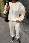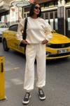 - Yetişkinler için tasarlanmış, günlük kullanımda rahatlık ve şıklığı bir arada sunan ekru renkli hırka-pantolon takım.; - Uzun kollu ve bisiklet yaka detaylarıyla modern bir görünüm kazandırırken, paraşüt detayları ile dinamik bir stil oluşturur.; - Dokuma kumaş yapısı sayesinde dayanıklılığı artırırken, vücut hatlarını saran regular kalıp ile konforlu bir deneyim sağlar.; - Kadın ve kızlar için uygun olan bu takım, düz deseniyle zamansız bir şıklık sunar.; - L beden seçeneğiyle geniş beden yelpazesi sunarak farklı vücut tiplerine uyum sağlar.; - Türk menşeli ürün, yerel üretim kalitesini evrensel standartlarla buluşturur.; - 2'li paket içeriği ile hem hırka hem de pantolon aynı anda satın alarak kombin derdini ortadan kaldırır.; - Casual ortamlarda rahatlıkla tercih edilebilecek bu takım, günlük giyimde fonksiyonellik ve estetiği bir arada sunar.; - Tüm sezonlara uygun olarak tasarlanmış olup, mevsim geçişlerinde de ideal bir