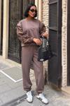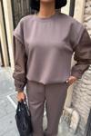 - Kahverengi tonlarında, şıklığı ve rahatlığı bir arada sunan kolları paraşüt detaylı lastikli modal takım.; - Yetişkin kadınlar için tasarlanmış, uzun boy kesimi ile modern ve zarif bir görünüm sağlar.; - Regular kalıp sayesinde vücut hatlarınıza uyum sağlayarak konforlu bir kullanım sunar.; - Dokuma kumaş tipi, dayanıklılığı ve yumuşak dokusuyla öne çıkar; uzun süreli kullanım için idealdir.; - Bisiklet yaka tasarımı ile sade ve şık bir stil oluştururken, düz deseniyle kolayca kombinlenebilir.; - Hırka ve pantolon olmak üzere 2 parçadan oluşan set, günlük kullanım için pratiklik ve şıklığı bir arada sunar.; - Casual/Günlük ortamlar için ideal olan bu takım, rahatlığı ve stili ön planda tutar.; - Tüm mevsimlerde giyilebilecek şekilde tasarlanmıştır; mevsim geçişlerinde bile konforlu bir deneyim sağlar.; - Fashion Forward persona ile dikkat çeken bu takım, trendleri yakından takip edenler için mükemmel bir seçenektir.