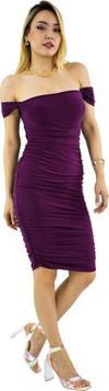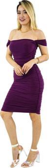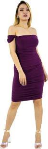 Bysevensail Kollu Midi Koyu Mor Toparlayıcı Etkili Drapeli Kadın Abiye Elbise Düğün Mezuniyet Özel Gün Kıyafeti