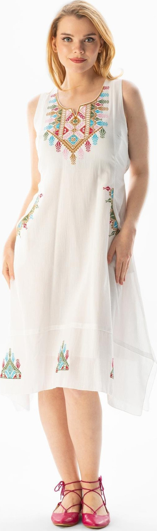 Eliş Şile Bezi Kolsuz Şile Bezi Antik Nakışlı Midi Boy Yazlık Elbise Krem Krm