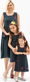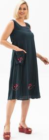 Eliş Şile Bezi Kolsuz Şile Bezi Burçak Midi Boy Yazlık Elbise Petrol Ptrl