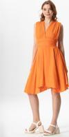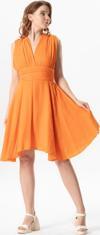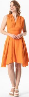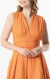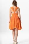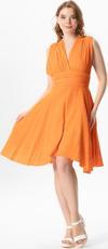 Kolsuz Sırt Detaylı V Yaka Laodikya Mini Yazlık Müslin Elbise Turuncu Trnc