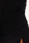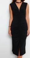 Ersefa Kolsuz V Yaka Elbise Koyu Kahverengi Fitted Vücuda Oturan Büzgü Detaylı Midi Esnek Örme Kalem Elbise