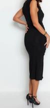 V yaka ve kolsuz tasarımı ile modern ve şık bir hava katarken, midi boyu ile hem şıklığı hem de rahatlığı bir araya getirir.