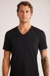 Basic V yaka t-shirt, Modal kumaşı ve özel kesimi ile rahattır, nefes alan yapısı sayesinde terletmez. Kaliteli kumaşı şeklini korur, tam oturur, son derece esnek yapıdadır. Kaliteli Kom kumaşı uzun süre formunu korur, bedene mükemmel şekilde oturur.