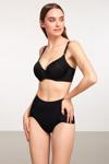 Daha ince bir görünüme sahip olmanız için kaliteli Kom kumaşı ile hazırlanmış korse; orta-yüksek sıkılıktadır. Çift kat kumaştan oluşan karın kontrol paneli vücudu toparlar ve bir beden küçük gösterir. Kıyafetlerin altından gözükmez, sıkıştırma ya da batma yapmaz. Kaliteli ve hafif Kom kumaşı uzun süre formunu korur, bedene mükemmel şekilde oturur.