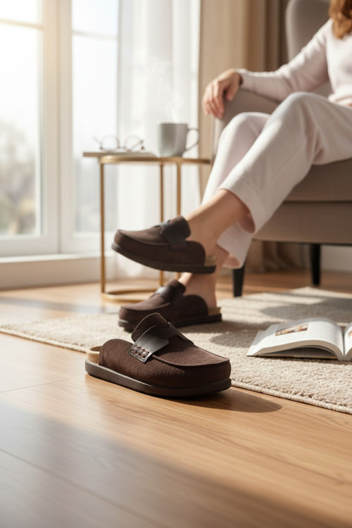 Konfores 2235 İç Dış Hakiki Süet Deri Tam Ortopedik Üst Kalite Ev,Ofis,Misafir,Damat ve Gelin Çeyizlik Terlik - NKT02235-kahverengi-44