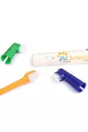 KÖPEK AĞIZ BAKIM SETİ Pet diş macunu seti, 1 adet iki kafalı diş fırçası, 1 adet diş macunu ve 1 adet parmak diş fırçası içerir. Diş macunu, yenilebilir ve güvenli bir formülle tasarlanmış olup, vanilya ve sığır eti lezzetlerine sahiptir. Diş fırçasının kılları yumuşak olduğundan, köpeğin dişlerini koruma amacıyla idealdir. Parmak diş fırçası ise birden fazla açıdan temizleme sağlar, köpeğin rahat hissetmesini destekler. Setin boyutu 25*11cm olup, plastik malzemeden üretilmiştir.