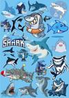 Reysa Tasarım Köpek Balığı Sticker Set 16 Parça Telefon, Tablet, Defter, Laptop Sticker