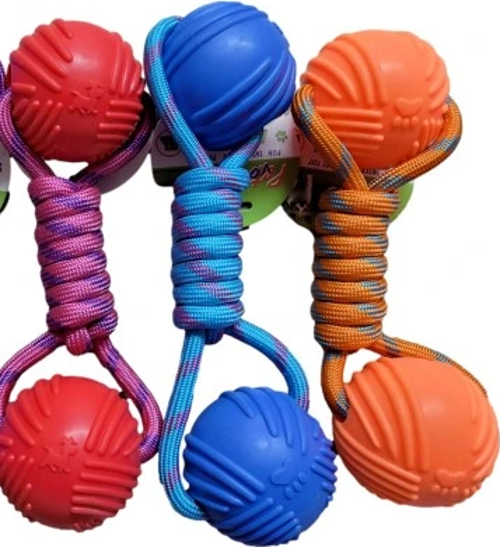 Köpeklerinizin sağlıklı bir şekilde çiğneme alışkanlığı edinmesi ve eğlenceli vakit geçirmesi için tasarlanmış bu dayanıklı kauçuk toplu oyuncak, kırmızı, mavi ve turuncu renk seçenekleriyle sunulmaktadır. Kauçuk top ve sağlam ipten oluşan bu oyuncak, diş sağlığını destekleyerek dişlerin temizlenmesine yardımcı olur. Fırlatma ve yakalama oyunları için idealdir ve köpeklerin enerjisini atmasına yardımcı olur. Dayanıklı yapısı sayesinde uzun süreli kullanım sunar.