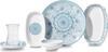 Toplam 24 parçadan oluşan bu kahvaltı seti, 6 kişilik sofralar için mükemmel bir kombinasyon sunar. Kayık tabaklar, reçellikler ve servis tabakları sayesinde her yiyecek kendi alanında estetik bir şekilde sunulur.