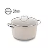Geri dönüşümlü, tamamen doğal malzemeden, çevre dostu teknoloji ile üretilen Granita çizilmeye karşı ekstra dirençli volkanit görünümlü PTFE kaplama ve yüksek ısıya dayanıklı silikon dış kaplama ile çok az yağ kullanarak lezzetli yemekler yapar.