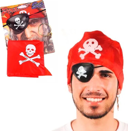 Korsan Bandana Korsan Göz Maskesi ve Korsan Küpesi 3 lü Kostüm Seti