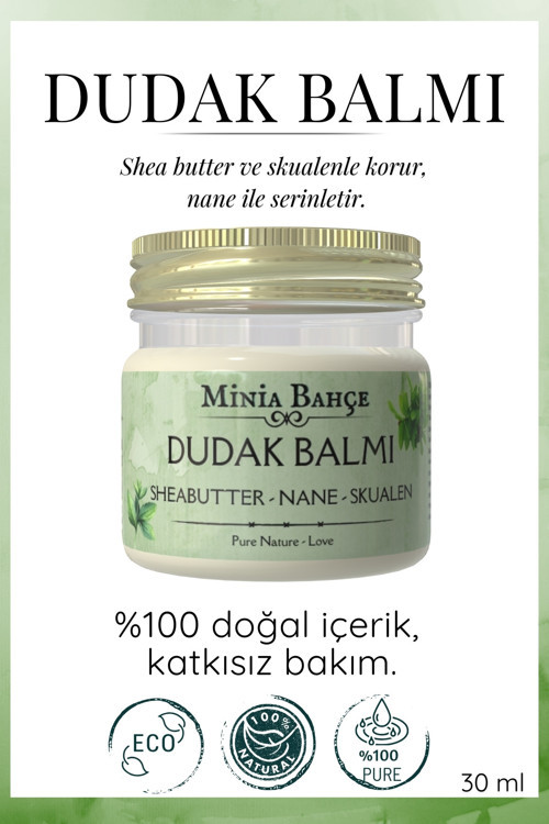 🌿 Koruyucu ve Dolgunlaştırıcı Dudak Balmı – Naneli | %100 Saf ve Doğal (30 ml)